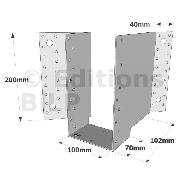 - Solives et poutres : Ils assurent une fixation solide des solives et des poutres, garantissant la stabilité des planchers. Ils sont utilisée pour fixer les éléments horizontaux de la charpente, comme dans les planchers ou les plafonds.