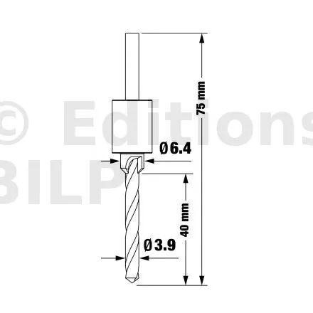 Foret aléseur - Diam. mèche : 3.9mm, Diam aléseur : 6.4mm - Réf. DBWOODDSPRO