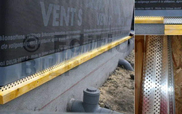 - Assure l’entrée d’air au niveau du raccord bas d’un parement extérieur de construction à ossature bois.