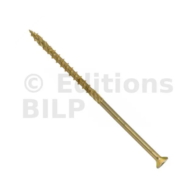 Nouvelle forme de la pointe de vis : les spires facilitent la pénétration de la vis dans le bois et l’assemblage des bois devient plus rapide.