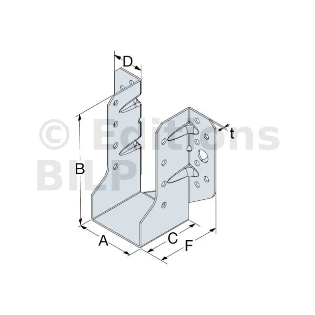 - Comparé aux sabots à ailes extérieures plus épais (supérieur à 2 mm), le SBE, plus fin et optimisé, permet de conserver des performances mécaniques similaires tout en étant plus léger, facilitant ainsi la manutention sur les chantiers. Il est adapté à une grande variété de projets, des petites constructions aux installations de plus grande envergure, tout en maintenant un haut niveau de résistance pour les usages courants.