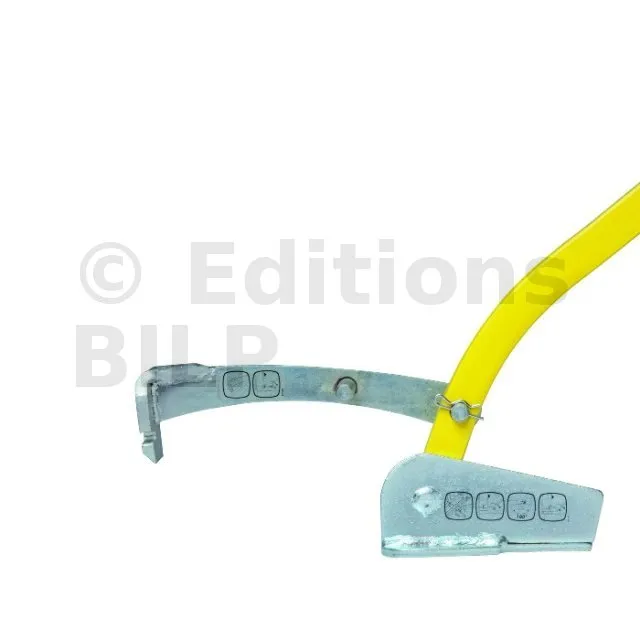 – Crochet biseauté en acier haute résistance renforcé et platine d’une épaisseur de 8mm. Ce crochet biseauté facilite la pénétration dans la traverse inférieure pour tirer les murs vides.