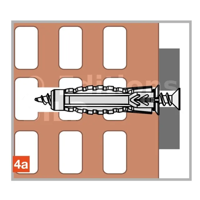 La cheville nylon universelle X1 evo, permet une fixation optimale d’éléments sur tous types de supports plein ou creux, notamment sur plaque de plâtre. Avec tous types de vis : vis filetage bois, vis filetage pas métrique. Avec un maintien large et stable grâce au 4 segments formant une rosace en arrière face du support lors de la pose.
