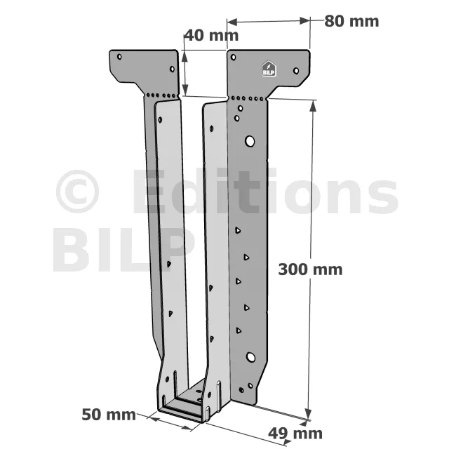 - Étrier fourni avec ses brides supérieures droites, pliables sur chantier afin de s’adapter à toutes les hauteurs de solives,