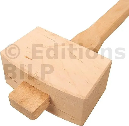 - Tête et manche en bois dur résistant.