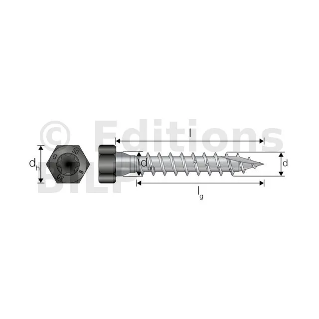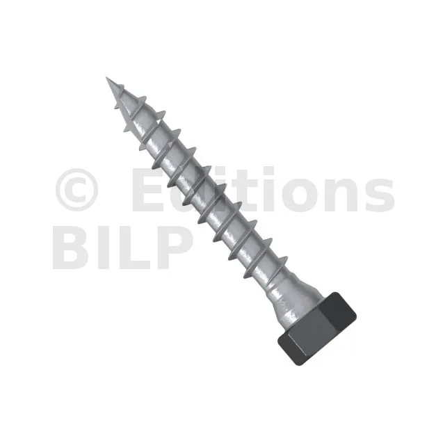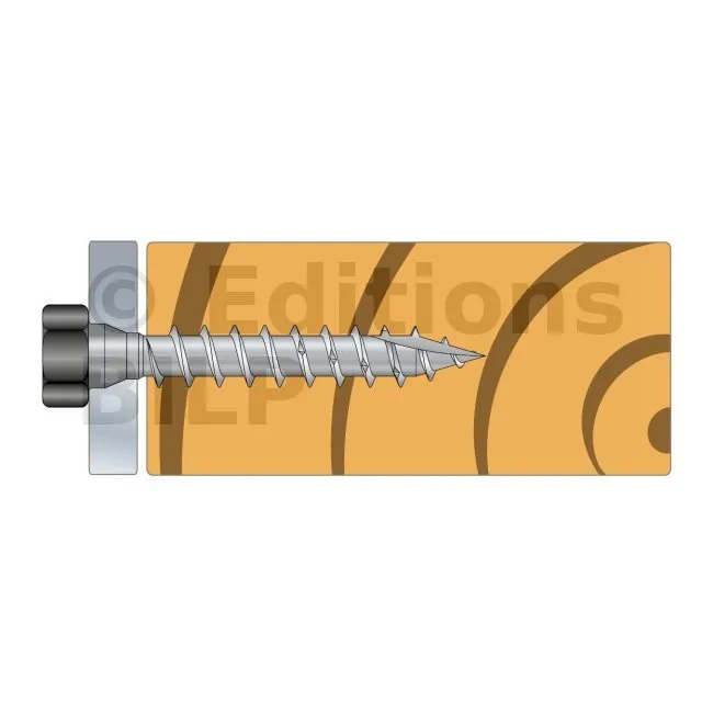 - Tête hexagonale : parfait maintien de la plaque acier sur bois grâce à sa tête large,