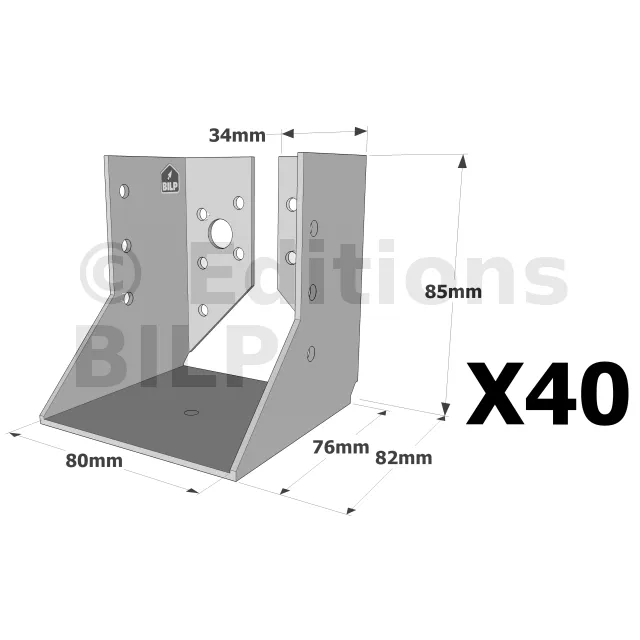 On admet une tolérance de 2 mm maximum entre l‘épaisseur du bois et la largeur du sabot. Exemple : un sabot plié à 76 mm peut porter une épaisseur de bois de 74 mm.