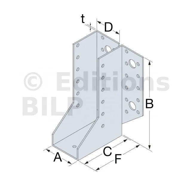 - Utilisés pour fixer les arêtiers et les chevrons, les sabots à ailes repliées assurent une connexion solide et durable.