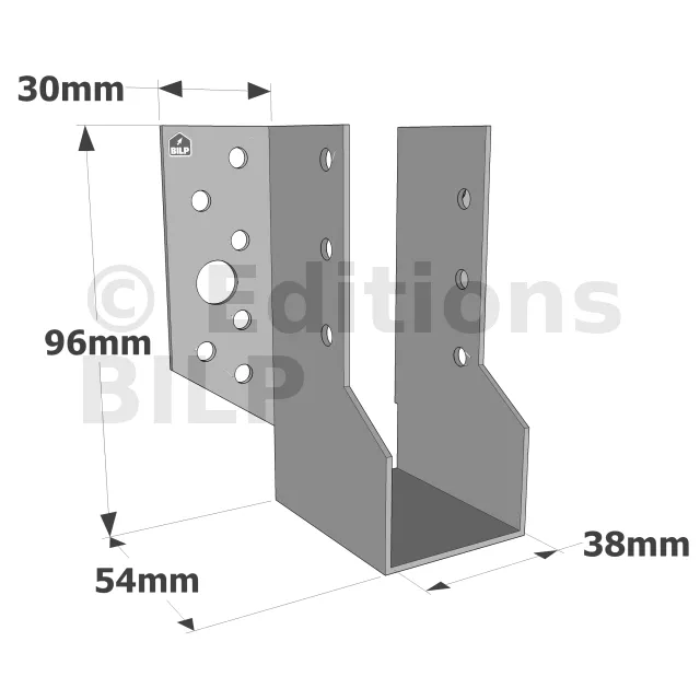 Sabots à ailes extérieures, gamme SBE ECONOMIQUE (épaisseur 1,5mm, profondeur 55mm) - Réf. SBE38/96_45