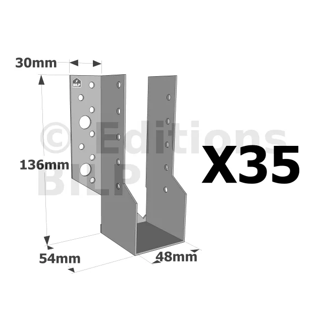 Sabots à ailes extérieures, gamme SBE ECONOMIQUE (épaisseur 1,5mm, profondeur 55mm) - Réf. SBE48/136_35