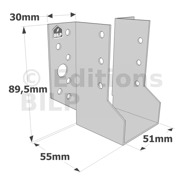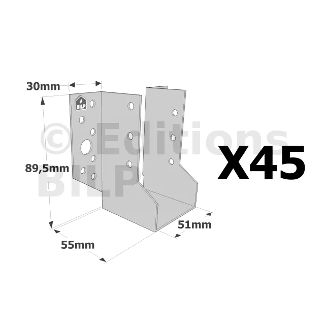 Sabots à ailes extérieures, gamme SBE ECONOMIQUE (épaisseur 1,5mm, profondeur 55mm) - Réf. SBE51/90_45