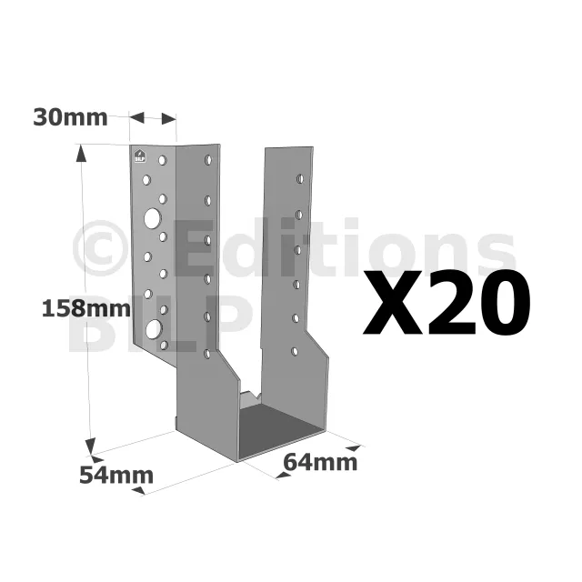 Sabots à ailes extérieures, gamme SBE ECONOMIQUE (épaisseur 1,5mm, profondeur 55mm) - Réf. SBE64/158_20
