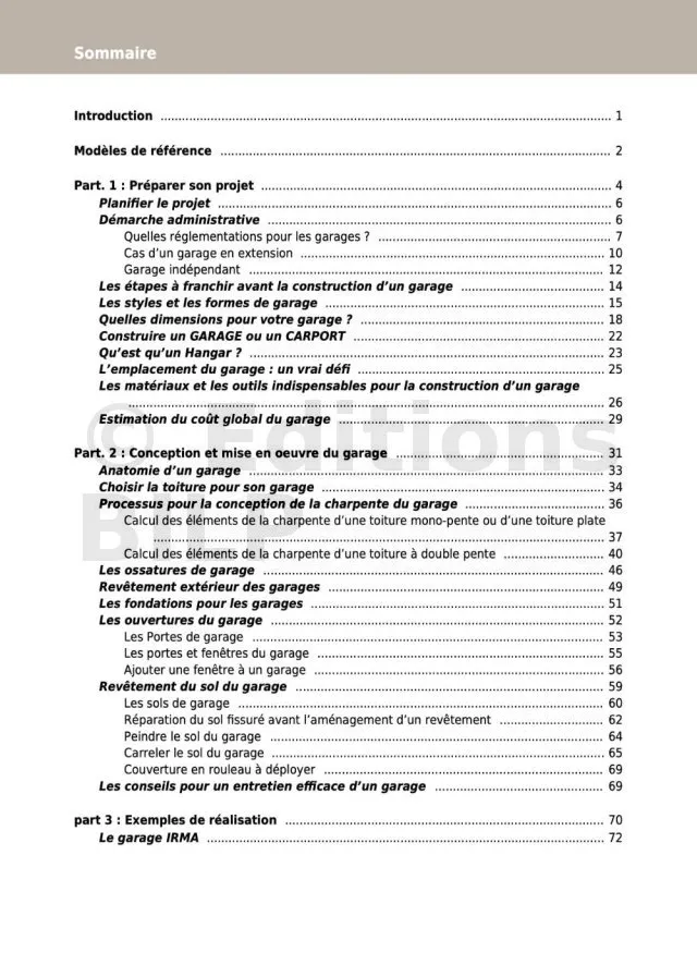Contenu du guide GARAGES