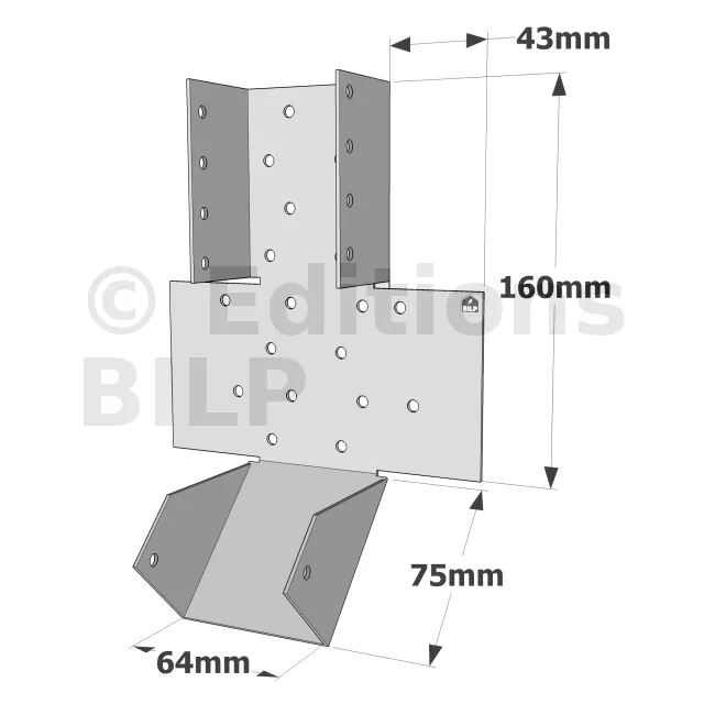 - Poutres lisses : Ces sabots inclinés permettent une fixation sûre et flexible des poutres lisses, essentielles pour la répartition des charges dans une structure en bois.