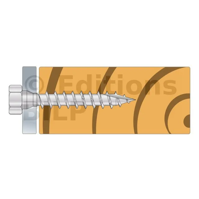 - Tête hexagonale : parfait maintien de la plaque acier sur bois grâce à sa tête large