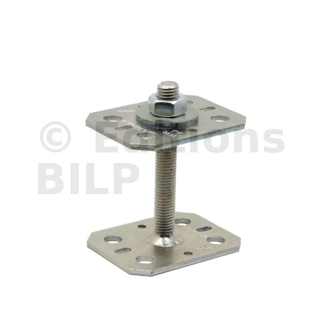 | Pied de poteau réglable sous charge PPRC | • Hauteur ajustable sur chantier • Supporte des charges élevées • Installation rapide | • Prix plus élevé • Filetage exposé : protection anticorrosion à prévoir |