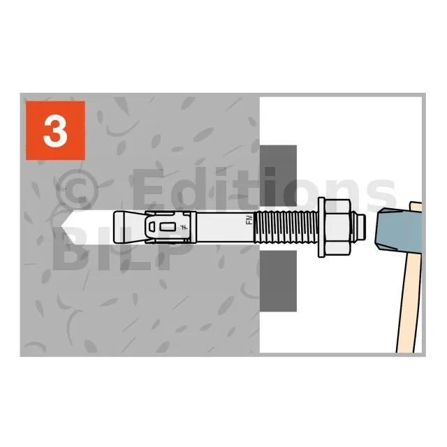 - Pose simple et rapide : écrou et rondelle prémontés et profondeur d’ancrage réduit ; Ø du filetage = Ø du perçage,