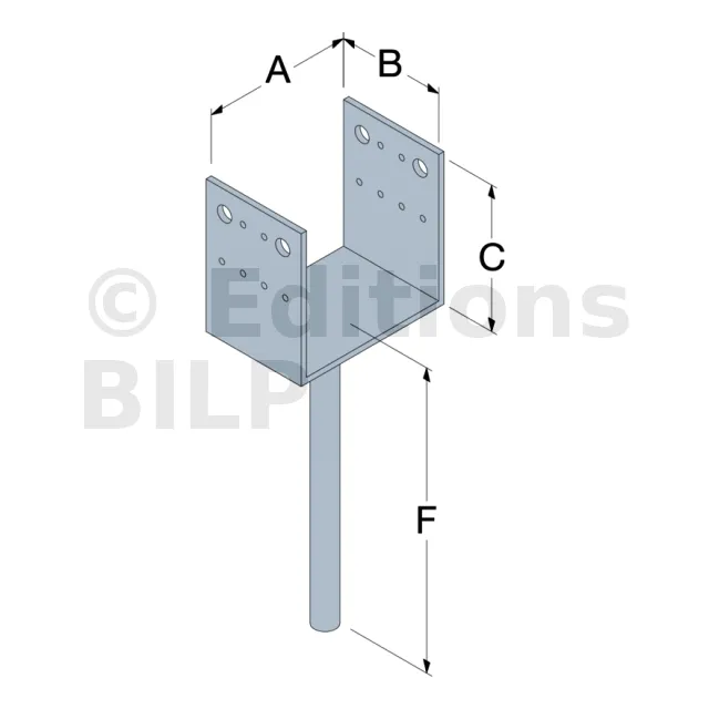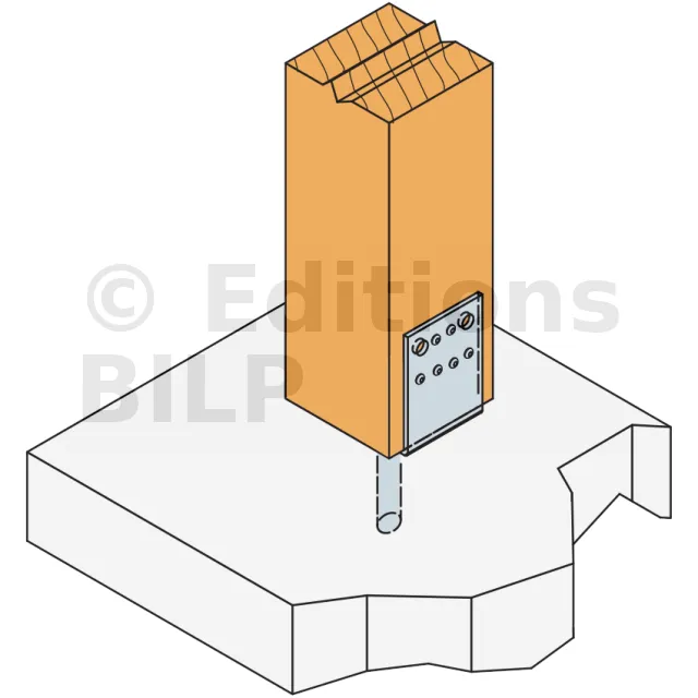 | Pied de poteau PPD100/70G | Largeur 100 mm adaptée aux structures lourdes ; platine haute multipercée pour fixation optimale. |