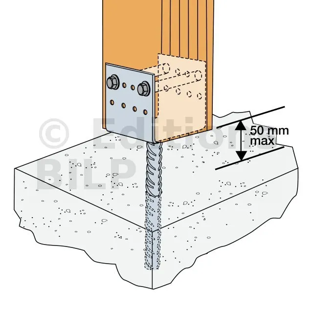 La distance entre la platine et le béton doit être de 50 mm maxi.