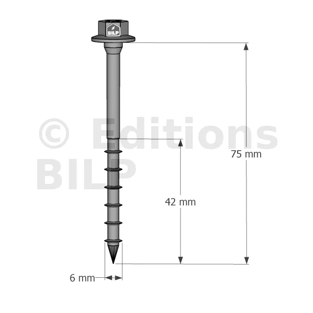 Vis connecteurs acier sur bois, SSH6.0X75 - Réf. 75131