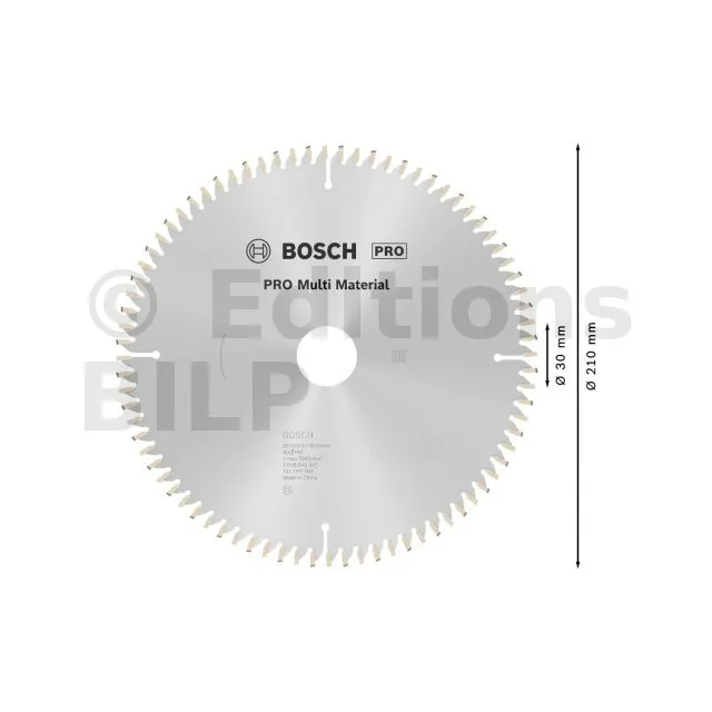 Lame de scie circulaire PRO 210 x 30 x 2.5 mm - 80 dents - Multi matériaux - Réf. 2608640445