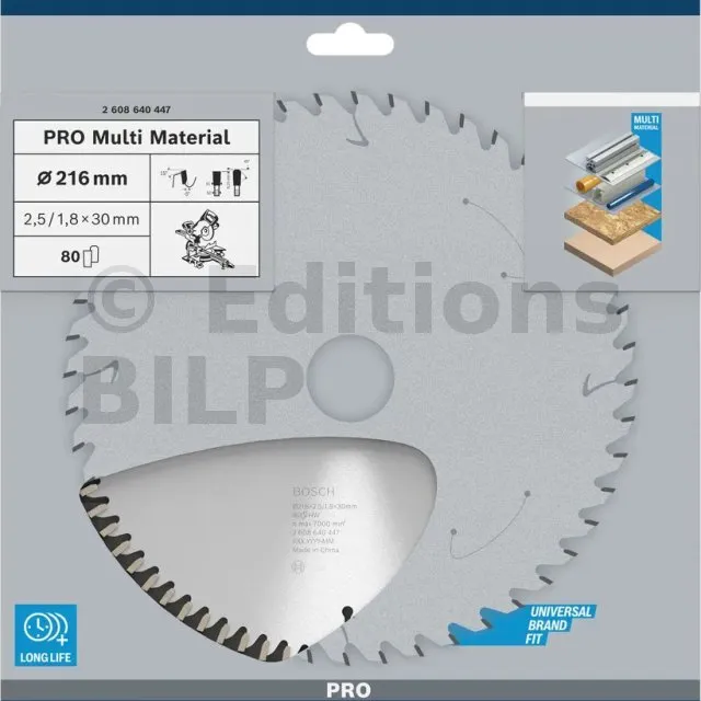 Lame de scie circulaire PRO 216 x 30 x 2.5 mm - 80 dents - Multi matériaux - Réf. 2608640447