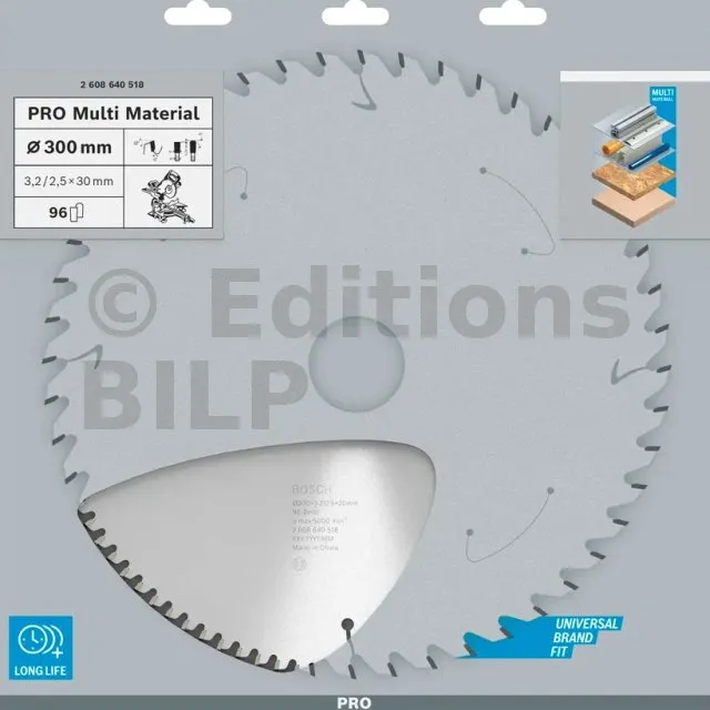Lame de scie circulaire PRO 300 x 30 x 3.2 mm - 96 dents - Multi matériaux - Réf. 2608640518