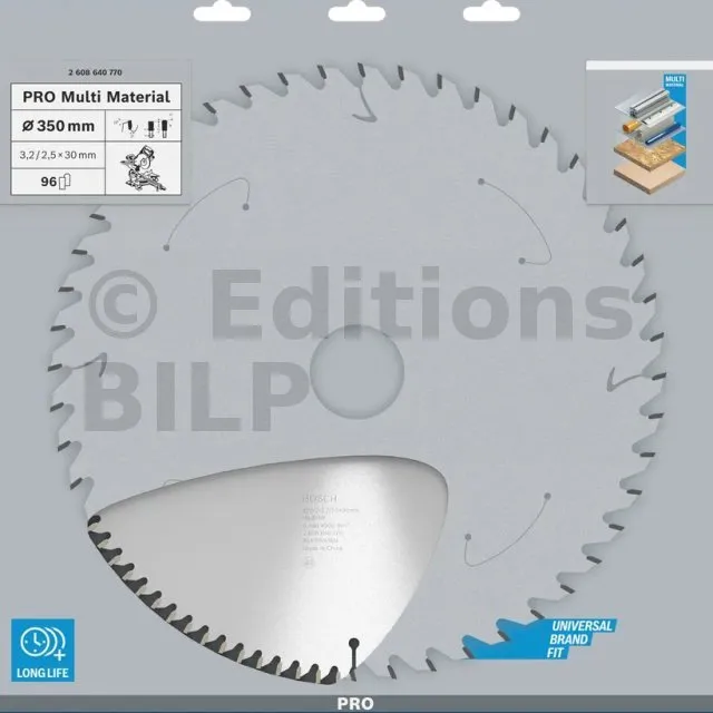 Lame de scie circulaire PRO 350 x 30 x 3.2 mm - 96 dents - Multi matériaux - Réf. 2608640770