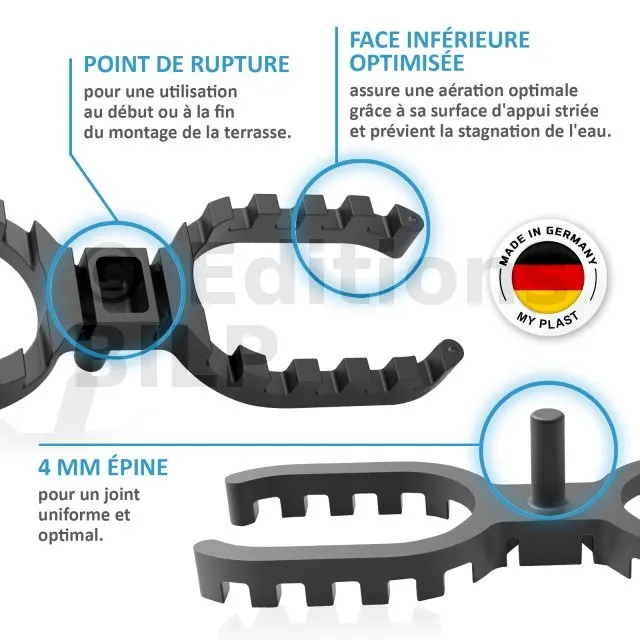 En cas de doute, choisissez les cales de 4 mm : si les lames gonflent jusqu’à se toucher, cela peut provoquer des déformations du bois et endommager la terrasse.