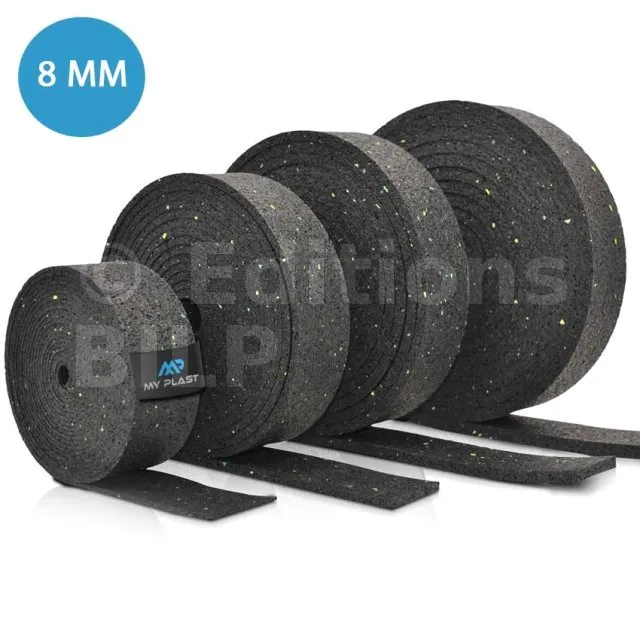 Rouleau de protection SOUS lambourde en granulé de caoutchouc – 10 m × 50 mm × 8 mm - Réf. MY-P-5000x80x8