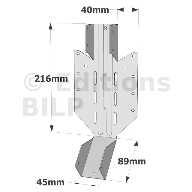 - Mise en œuvre dans les 4 dimensions : Grâce à sa conception unique, l’étrier LSSU peut être mis en oeuvre dans les quatre dimensions, offrant une adaptabilité sans précédent. Que ce soit pour des ajustements horizontaux, verticaux, ou angulaires, cet étrier garantit une solution sur mesure pour chaque configuration de structure bois.