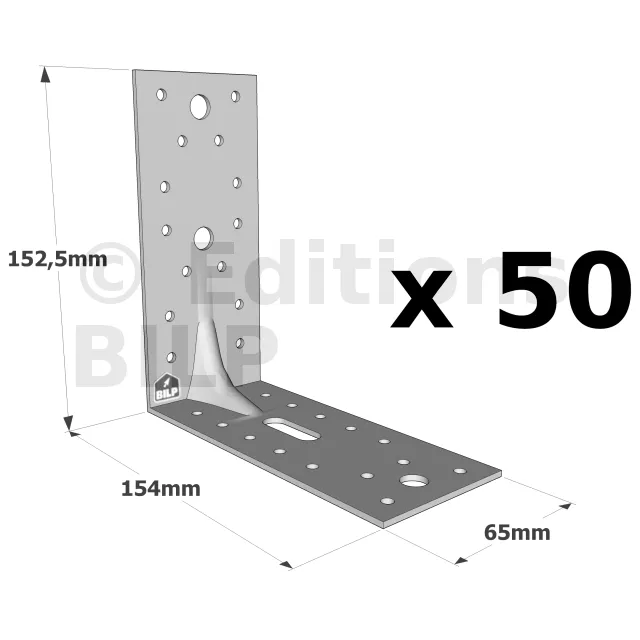 Équerres renforcées CLASSIQUES asymétriques pour le BOIS et le BETON - Réf. E9/2.5_50