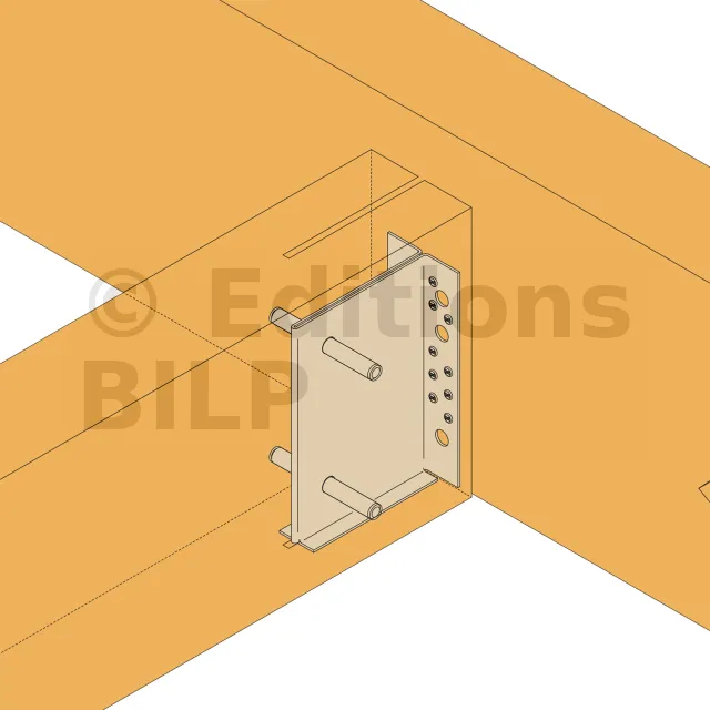 L‘étrier à âme intérieure permet un assemblage discret sur support bois. Le talon intérieur positionne l’étrier par rapport au bois facilitant le montage des broches.