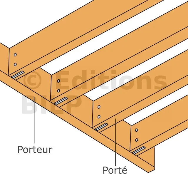 Sur porteur bois (exemple : La poutre sur laquelle les étriers seront fixés) :