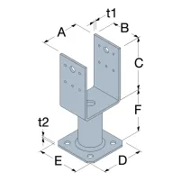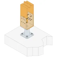 Ce pied de poteau en U avec platine permet de fixer un poteau sur une dalle béton tout en résistant à des efforts dans les 4 directions.