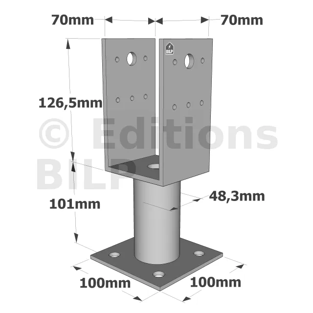 Pieds de poteau en U avec platine - Réf. PPUP70