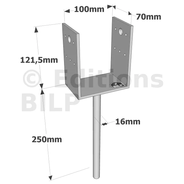 Pieds de poteau en U à sceller - Réf. PPD100/70G
