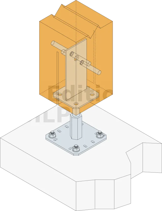 Les pieds de poteau en âme intérieure type PPSR permettent la réalisation d‘assemblages discrets et fiables. Leur conception en âme assure une bonne reprise des charges au soulèvement.
