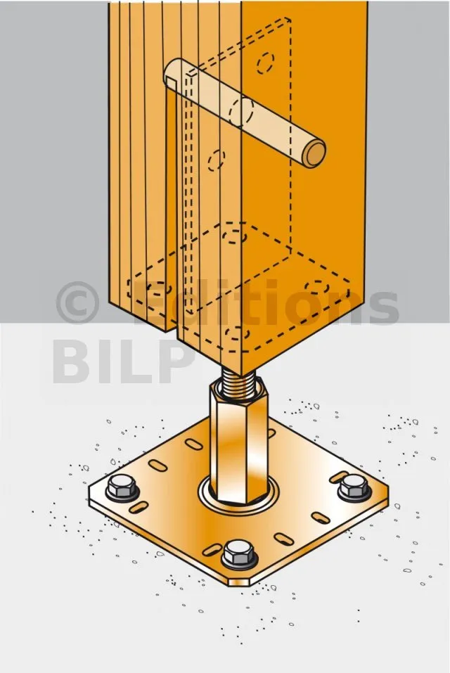 4. Le pied de poteau peut aussi être noyé dans le béton au moment où ce-dernier est coulé.