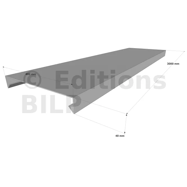 Couvertine d’acrotère plate - Gamme 400 - Aluminium 15/10 - Longueur 3000mm - Réf. CP15-400-3000