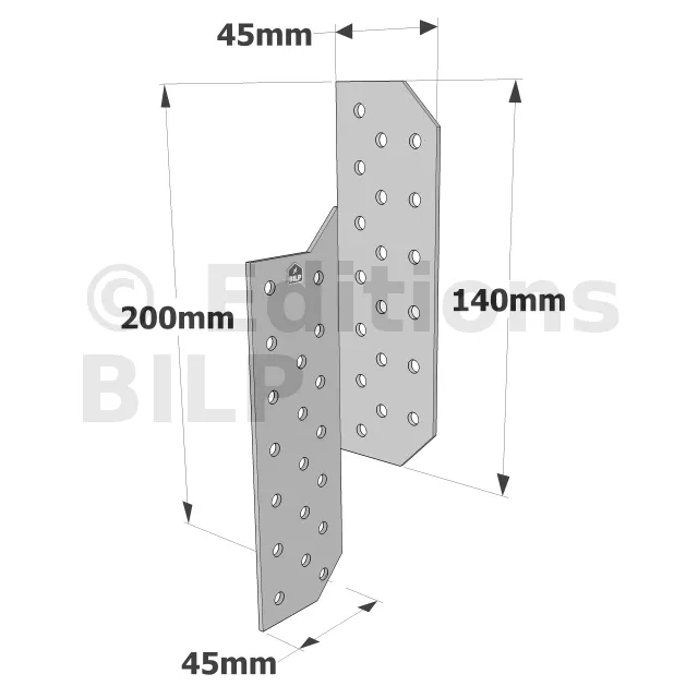 Patte de solivage GAUCHE - 45x200x2mm - Réf. PSG200/45/2_10