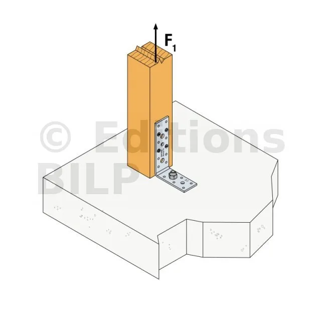 - Fixation bois/bois - type poteau/poutreAile B : 4 ; Aile C : 4 ; type : CNA Ø4.0x35 ou Ø4.0x50 mm - Assemblage avec 2 équerres
