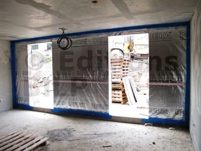 DELTA®-REFLEX est mis en œuvre sur la face chaude de la construction de manière continue en collant les recouvrements entre lés et les différents raccords latéraux ou sorties de conduits de ventilation.