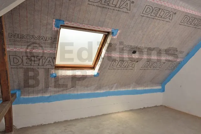 - Couche d’étanchéité à l’air sous rampants isolés (constructions traditionnelles ou à ossature bois).