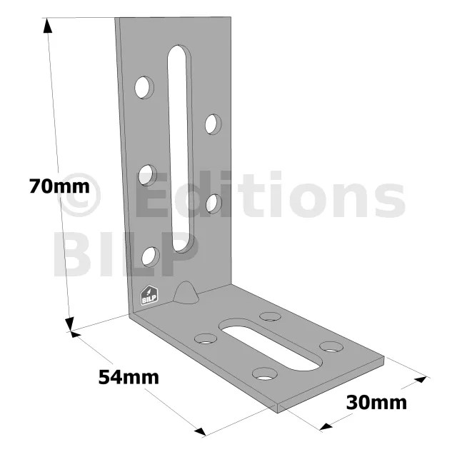 - Trous oblongs facilitant l’ajustement des assemblages,