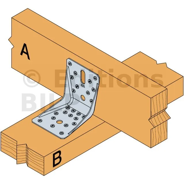 - Fixation BOIS/BOIS - clouage totalAile A : 10 ; Aile B : 14 ; type : Pointes annelées CNA Ø4.0x35 ou Ø4.0x50 mm, Vis CSA Ø5.0x35 ou CSA Ø5.0x40