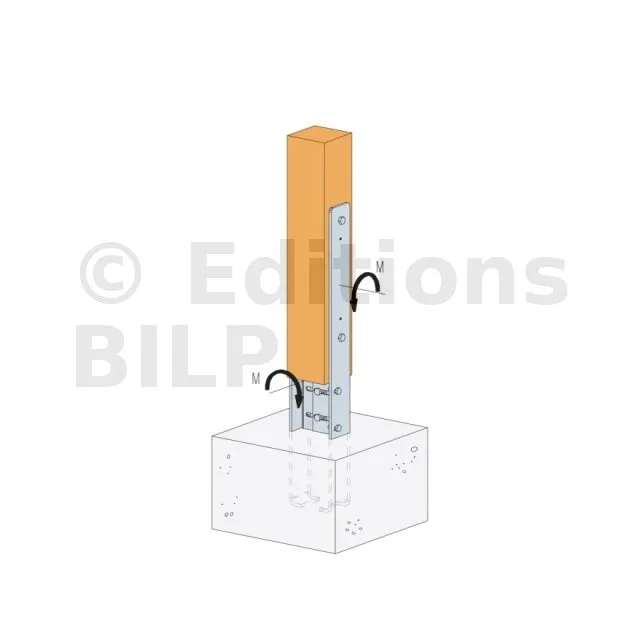 - Le poteau bois est fixé par l’intermédiaire de boulons M16 et de crampons (ex : BULLDOG Type C2 Ø75).