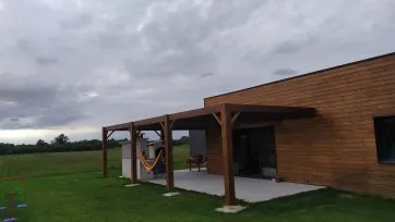 Autre point très important, votre construction doit être convenablement dimensionnée (sections et dimensions des éléments) selon la norme EUROCODE 5. Il y a de nombreux calculs à faire. Si vous surdimensionnez, vous allez dépenser de l’argent inutilement et obtenir un résultat esthétique de type "blockhaus". Si vous sous-dimensionnez, vous risquez de vous prendre la toiture sur la tête, blesser gravement quelqu’un (ou pire) et votre responsabilité serait engagée. Il faut dimensionner la structure selon les normes et les règles de l’art.