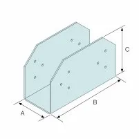 La résistance caractéristique total de la platine est donnée ci-dessus. Si deux éléments bois sont connectés avec une surface d’appui égale, alors la charge appliquée sur chaque élément ne doit pas excéder la moitié de la résistance totale. Si l’un des deux éléments connectés ne repose que sur une aile en porte à faux de la platine, alors la charge appliquée sur cet élément ne doit pas excéder 0.28 fois la résistance totale, la charge appliquée sur l’autre élément reposant sur le reste de la platine ne doit pas excéder 0.72 fois la résistance totale.