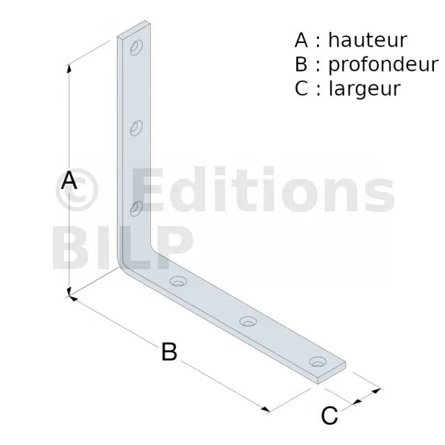 | A | B | C | t | Ø5 (chanfreiné Ø8.5) | Ø5 (chanfreiné Ø8.5) | |
